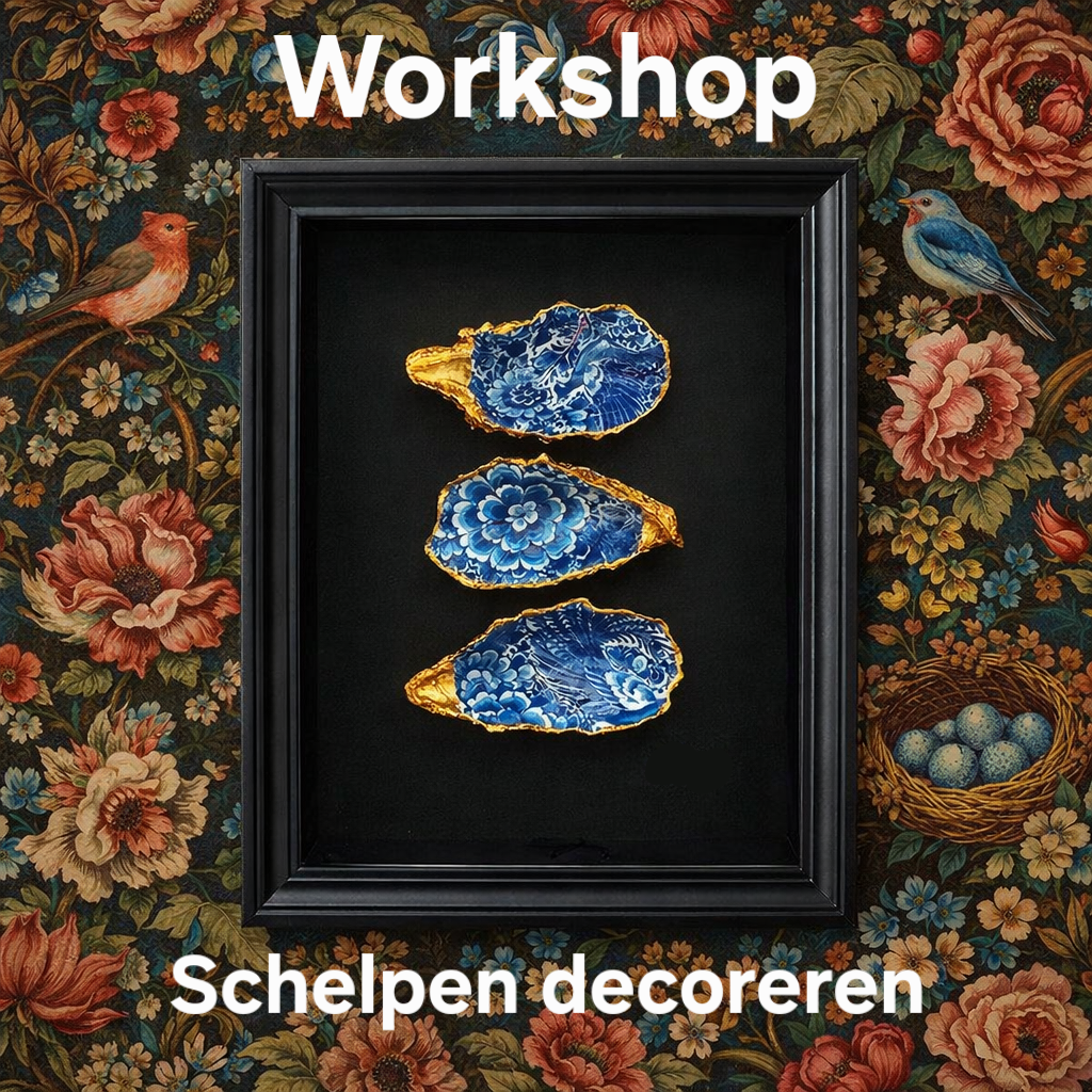 Tijdens deze relaxte workshop leer je hoe je met kleuren en moderne technieken unieke ontwerpen op schelpen schildert, of gebruik maakt van de decoupage techniek. Of je nu minimalistische lijnen, abstracte vormen of grafische patronen wilt creƫren, je geeft de schelpen een eigentijdse look die perfect past bij jouw interieur.